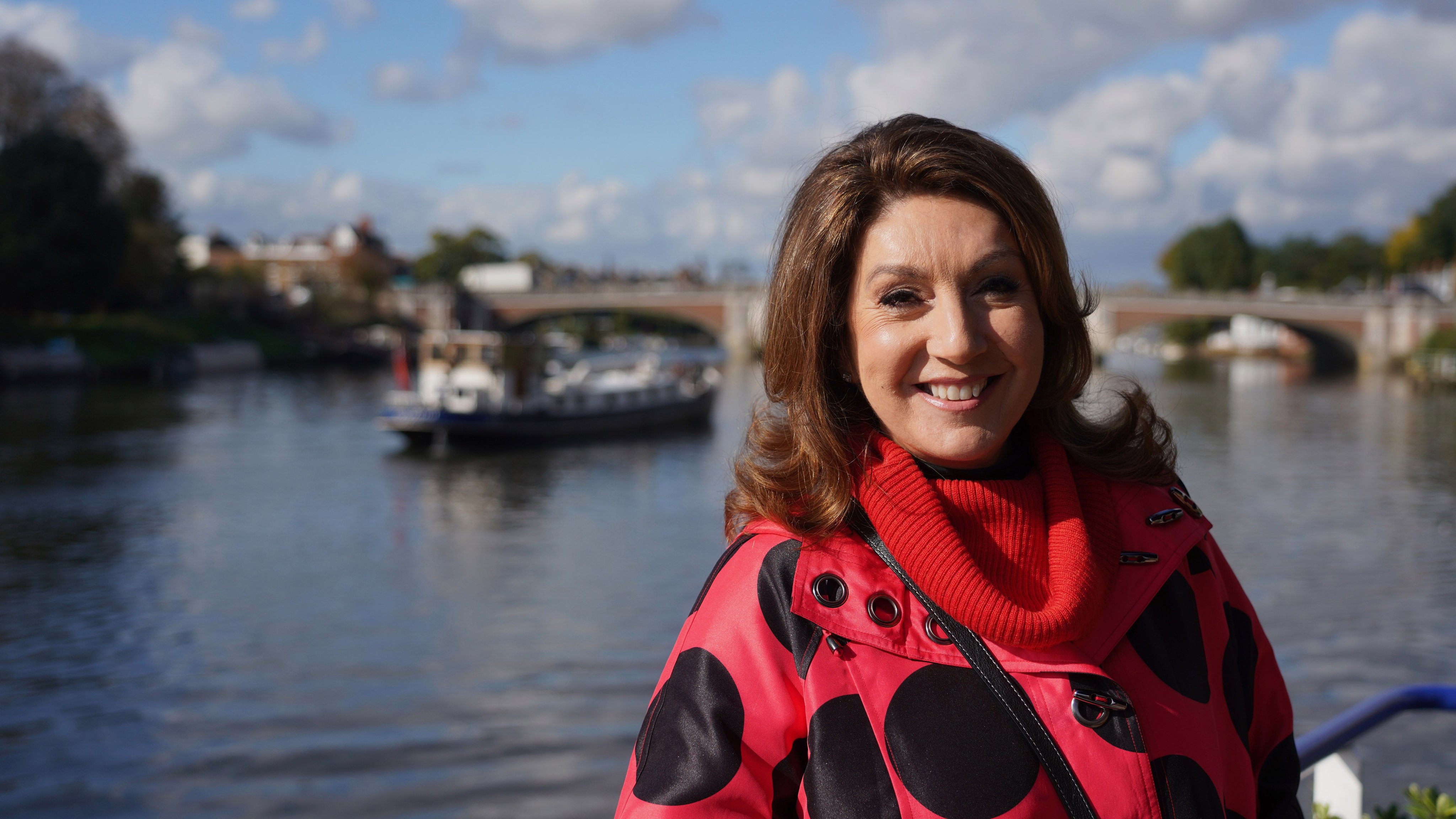 JANE MCDONALD returned to the Thames for another episode of her series Cruising with Jane McDonald.